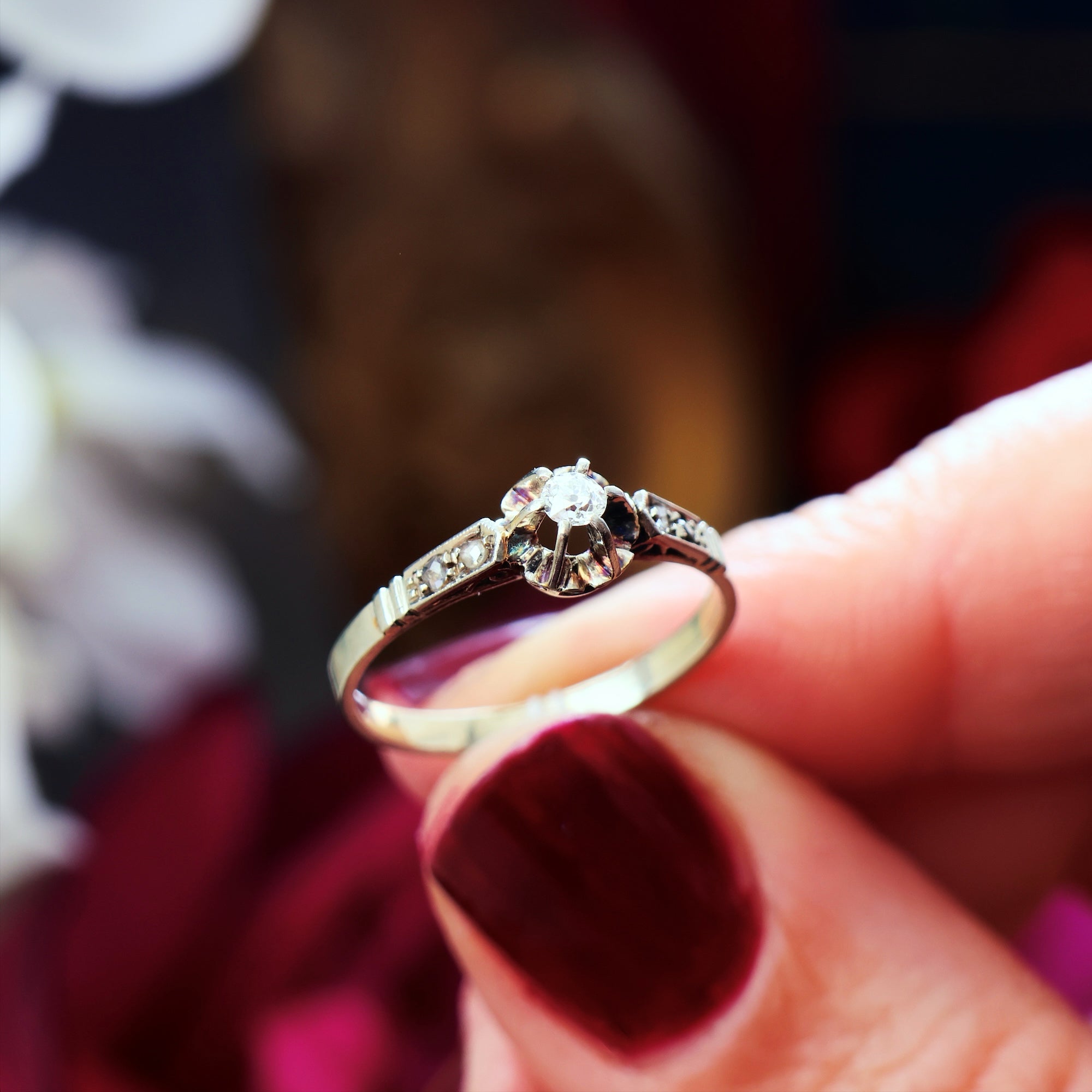 A delightfully sweet hand made vintage Diamond engagement ring, perfect for the vintage loving fiancée and 100% ethical since it is 100% recycled and original.
