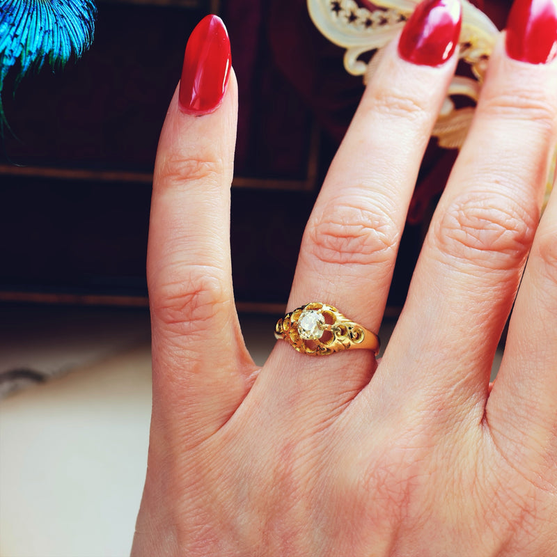 Antique Gothic Revivalist Diamond Solitaire Engagement Ring