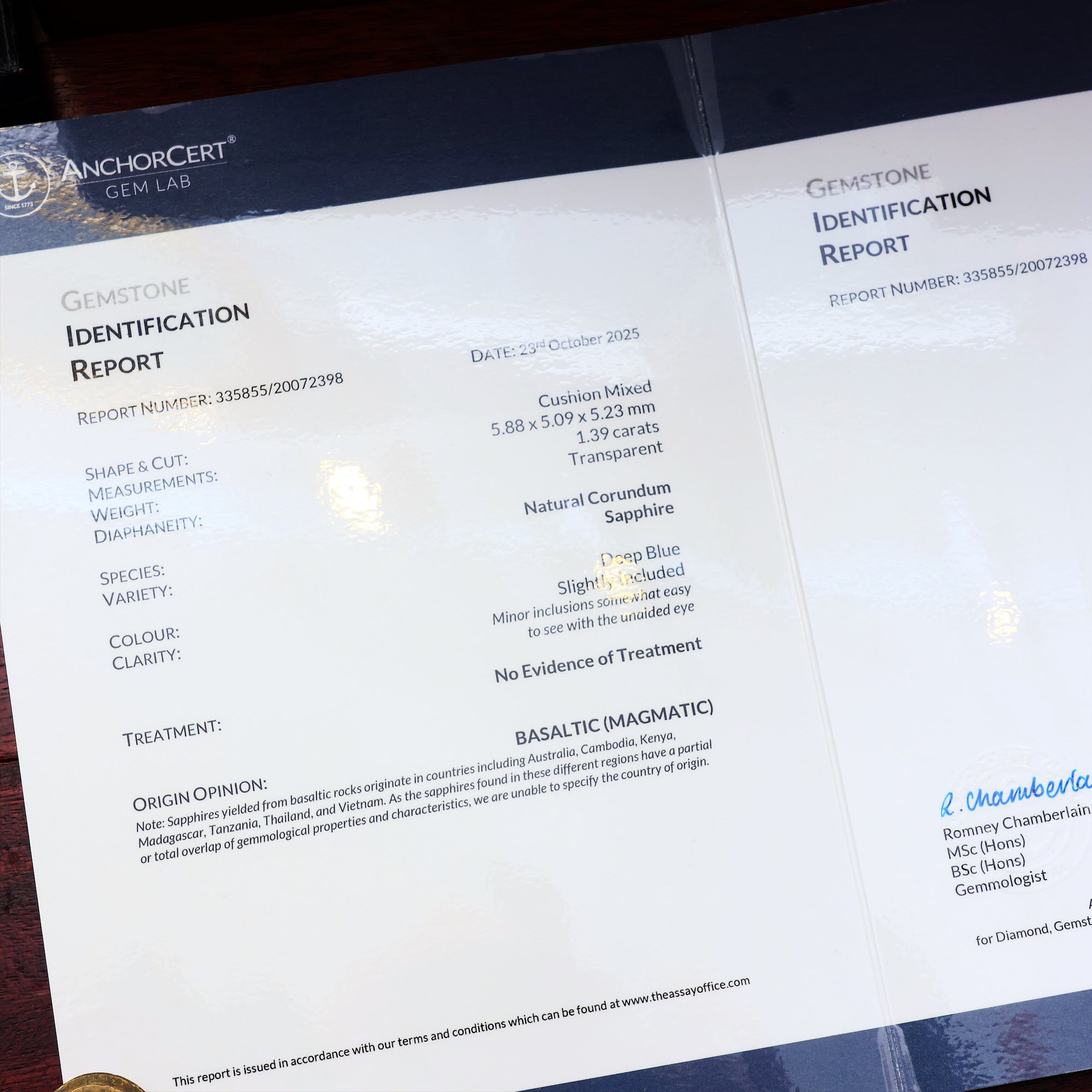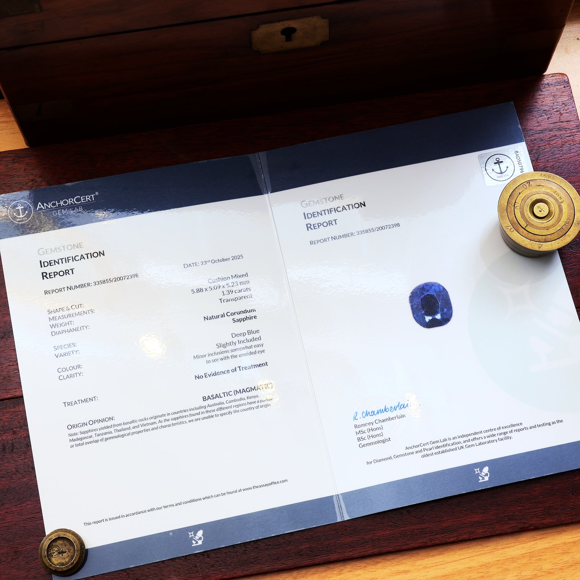 With the characteristic glimmer particular to emerald-cuts which sends scintillation along the facets; the wonderful natural Diamond has been unset and certificated by the Birmingham Assay Office. It was judged at SI1 and J colour (near colourless and slightly included; however even under a 10x magnification we can't see any inclusions!).