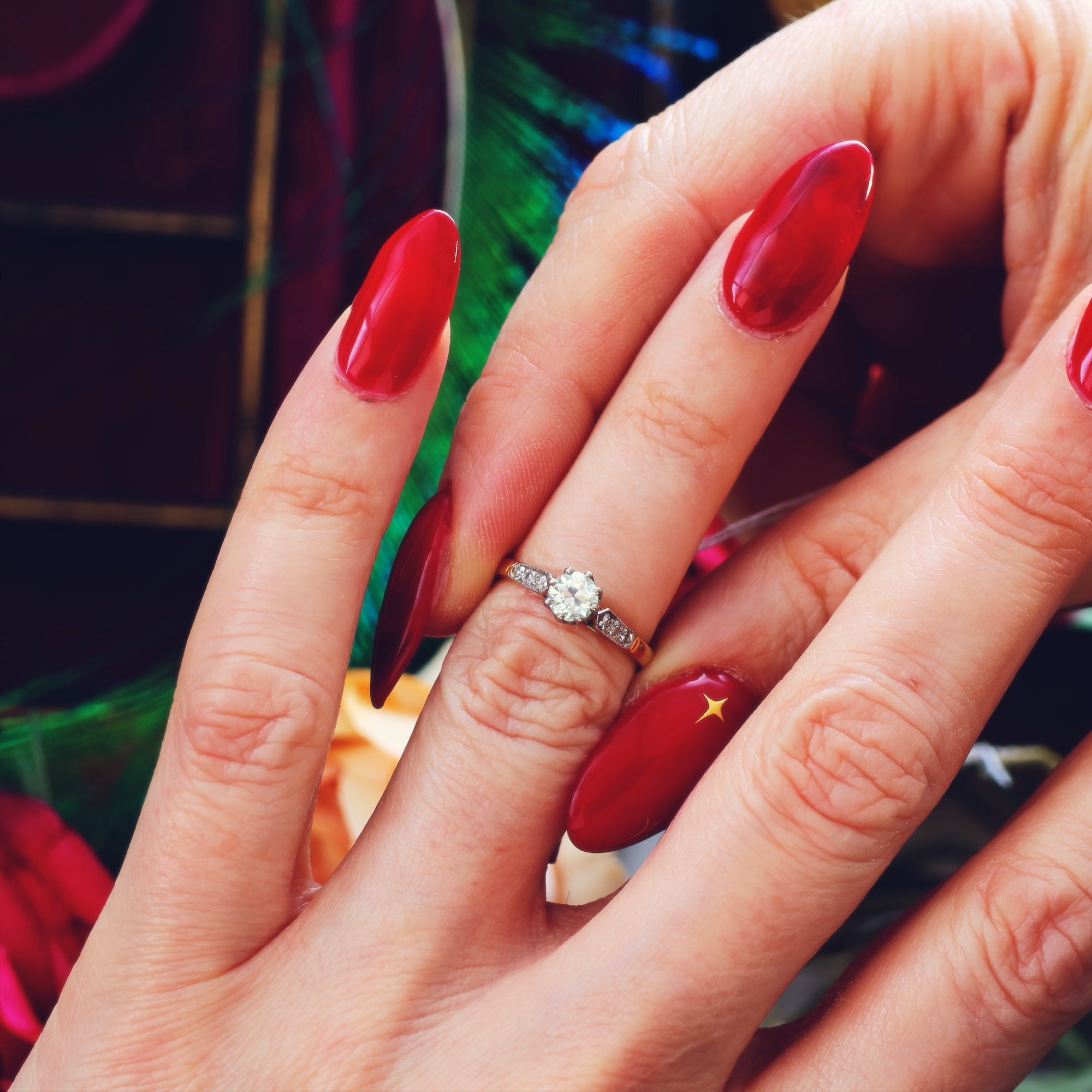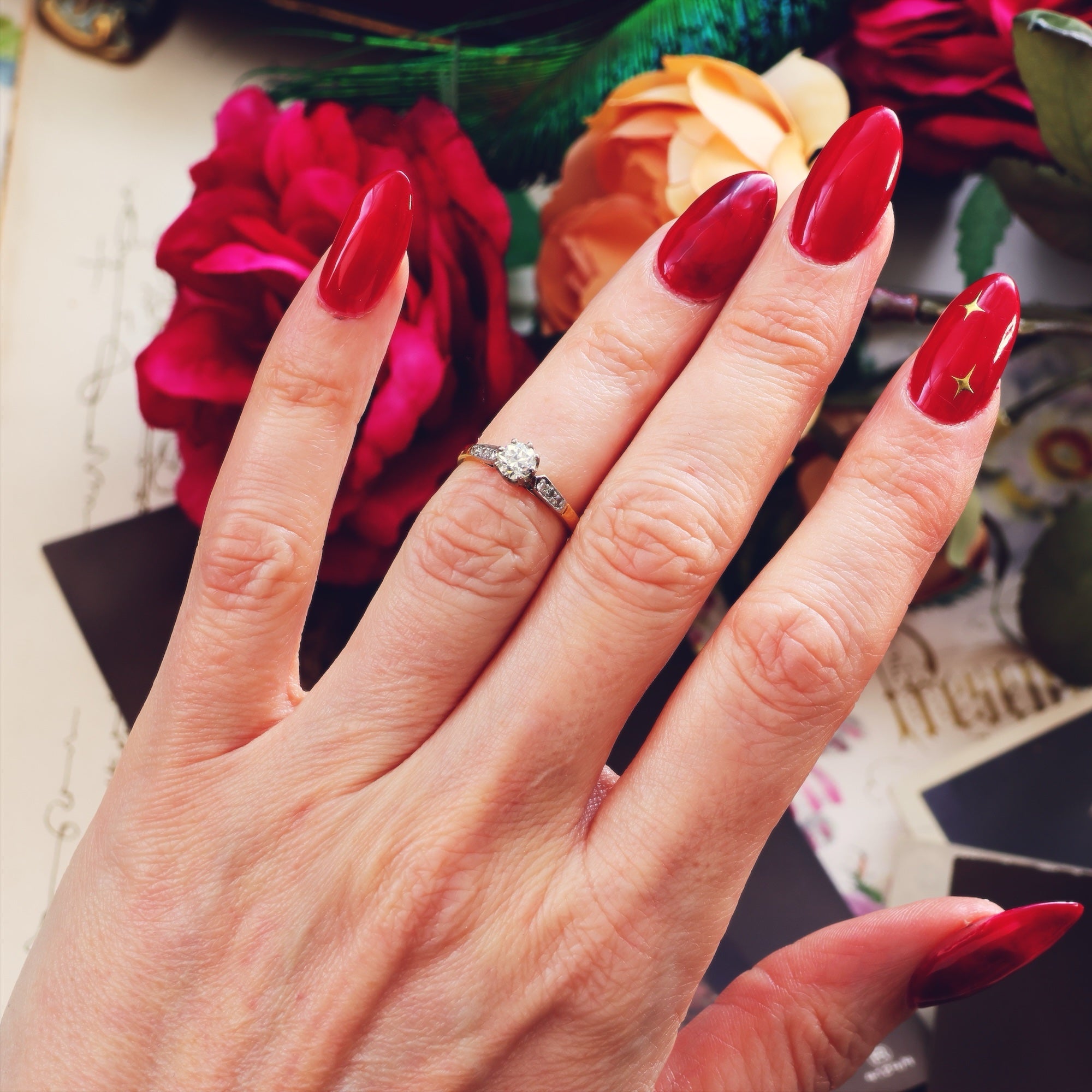 Every aspect of this ring is hand shaped: from the olden hand faceted Old European Cut Diamond, to the hand sawn coronet gallery in which it sits. Very much a rarity nowadays when time is so costly and artisan work much less common. The Diamond is gorgeously white and clean; it was cut in what we now refer to as the 'old European' way, with more precise faceting than had been known before... this leading to a more dazzling sparkle.