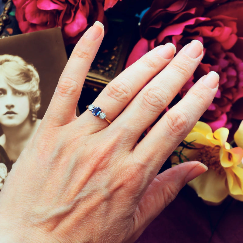 Darling One! Vintage Sapphire & Diamond Trilogy Engagement Ring