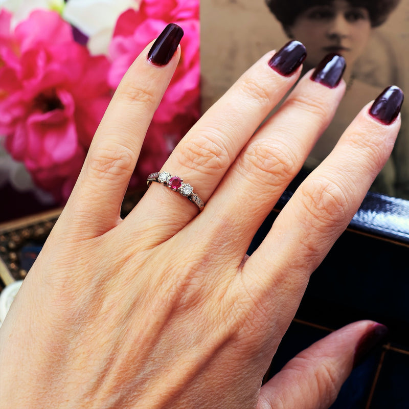 Cutest Vintage Ruby & Diamond Trilogy Engagement Ring