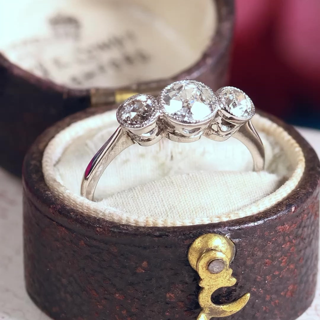 Vintage Recycled Hand Cut Diamond Trilogy Ring