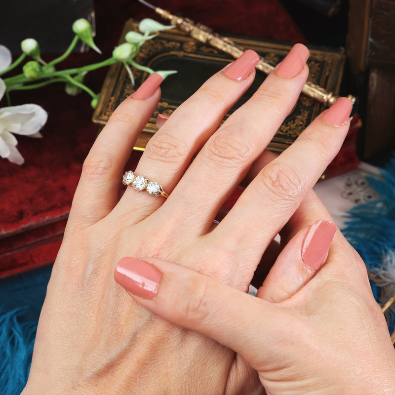 Vintage Recycled Hand Cut Diamond Trilogy Ring