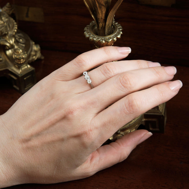 Antique Hand Cut Diamond Trilogy Engagement Ring