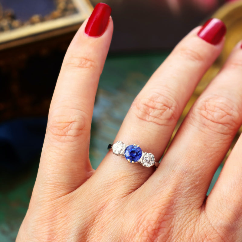 Darling One! Vintage Sapphire & Diamond Trilogy Engagement Ring