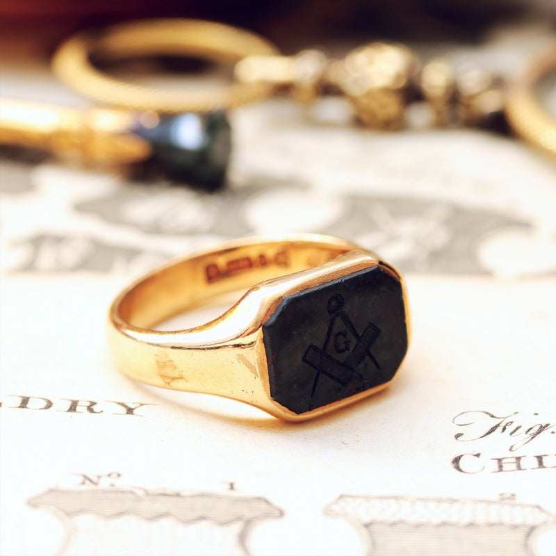 Antique Date 1911 Masonic Intaglio Seal Ring
