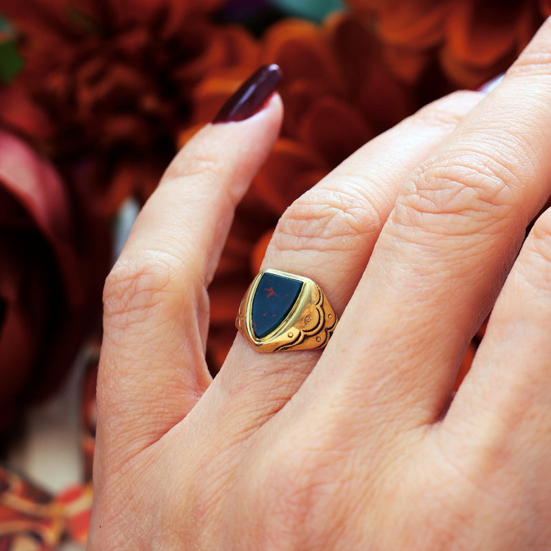 Striking Art Deco Date 1955 Bloodstone Signet Ring