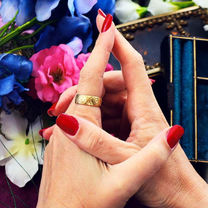 Antique Date 1896 'Roses for Love' Hand Engraved Wedding Ring