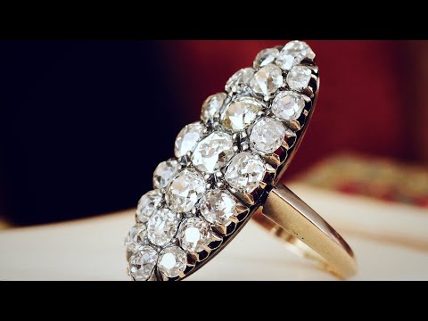 We judge the combined Diamond weight to be in the region of 2.60cts, and mounted in a light gallery of Silver upon 18ct yellow Gold, the whole is nicely patinated with a gracely and historic air. With French Assay (the Eagle) and Import marks (the Swan) to the back of the band, it is likely this jewel was created elsewhere in Europe, possibly in The Austro Hungarian Empire famed at the time for its jewels and craftspeople. The ring size is an 'O' or '7.25' but could be altered a wee bit to suit. the face measures just over an inch lengthwise and half an inch across, the ring size an 'O' or '7.25' but may be altered to suit.